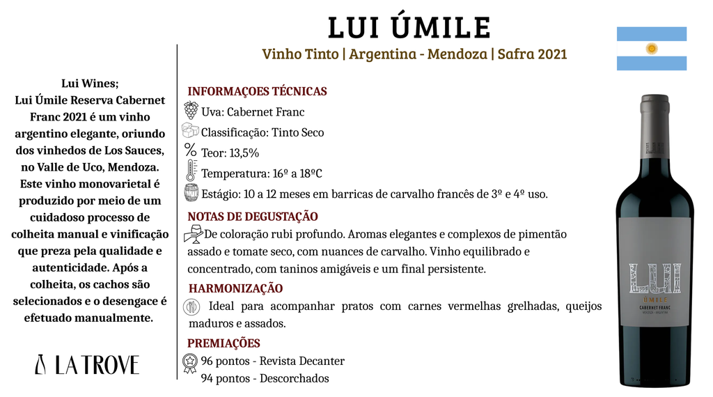Gustativo: Paladar Na boca mostra-se muito equilibrado, concentrado, com taninos amigáveis que realçam a sua personalidade e com um final de boca persistente.